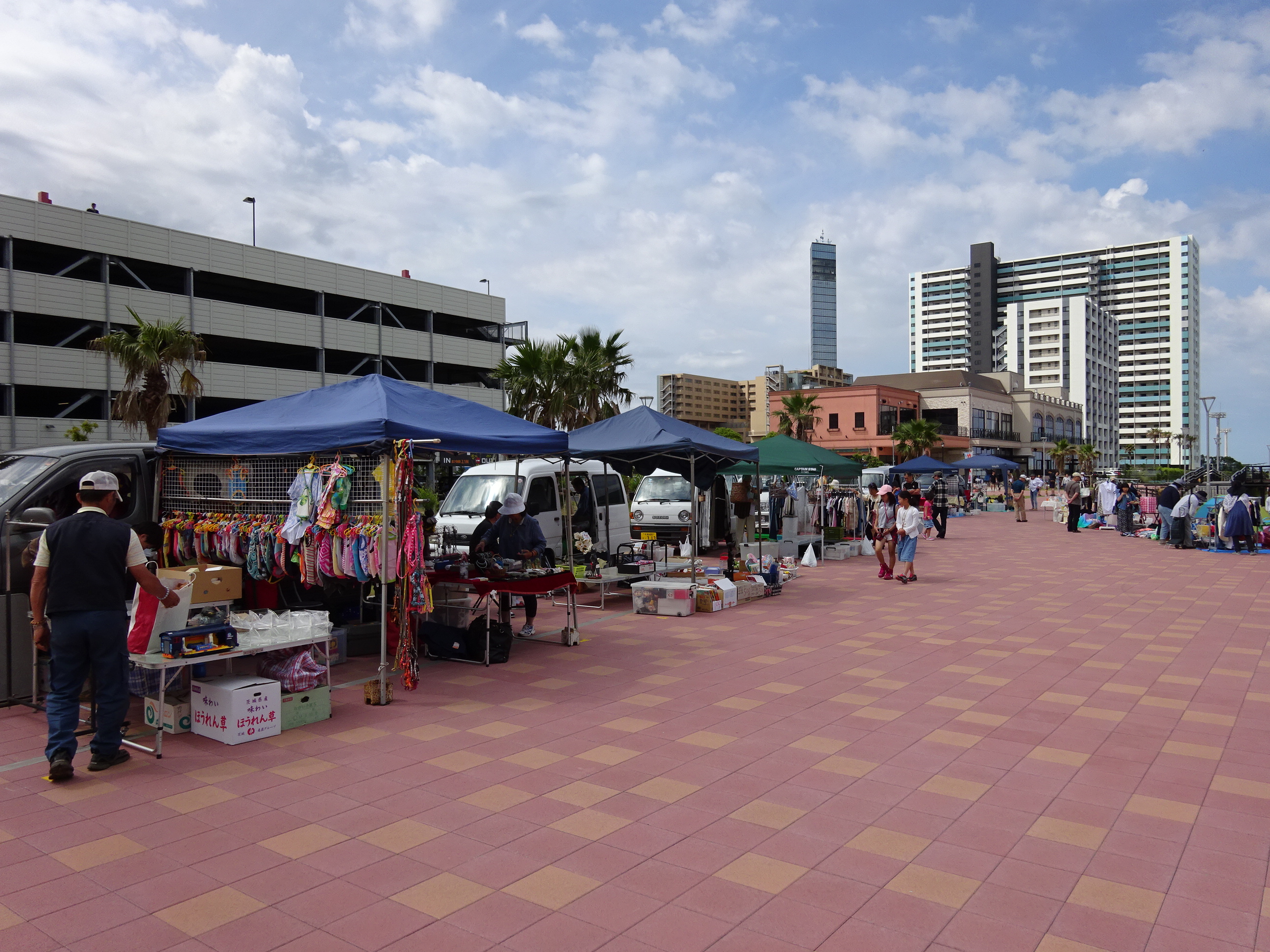 旅客船ターミナル等複合施設であるケーズハーバーの隣にある「千葉みなと港湾緑地」と「ケーズハーバー駐車場」で、毎月第1日曜日に「千葉みなとフリーマーケット」開催しています。(※10月と12月は第2日曜開催。1月はお休み)