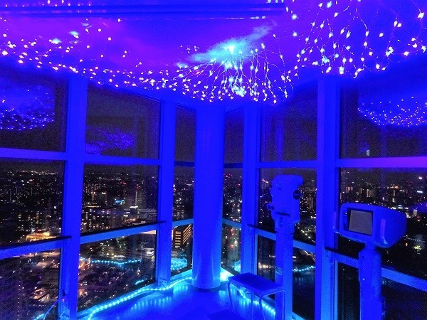 展望室で幻想的な天の川を見よう。日常から離れた癒しの空間と夜景をお楽しみください。