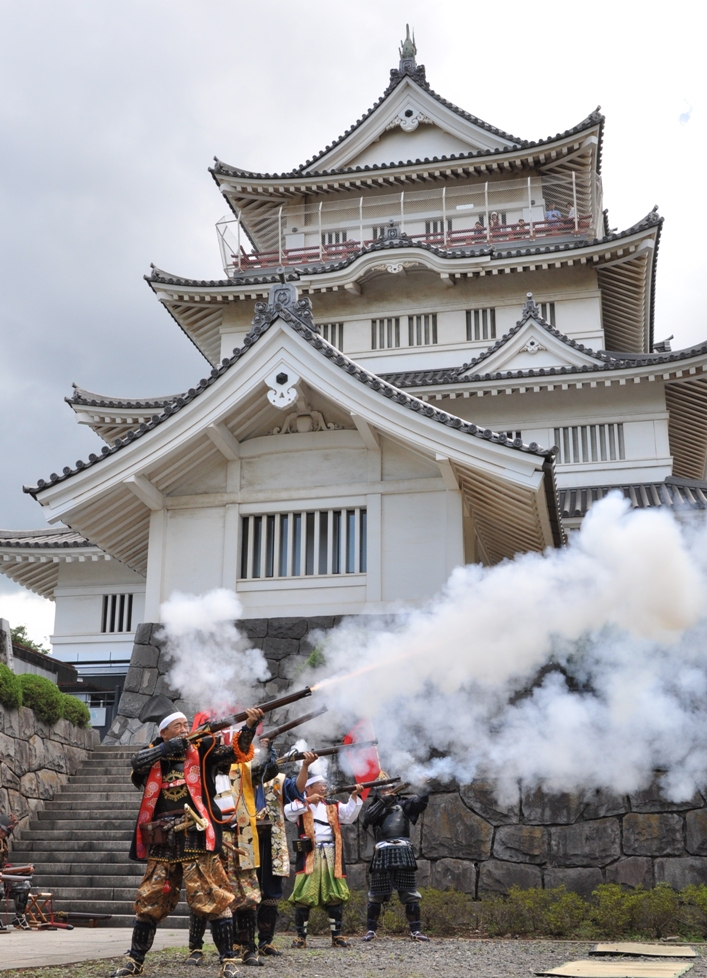 郷土博物館前で火縄銃の実射を行います。(空砲ですので安全です)