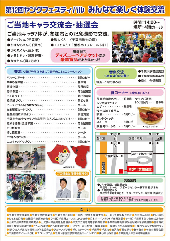 その他にも音楽交流や食のコーナー、ご当地キャラ交流会など盛りだくさんのイベントです。