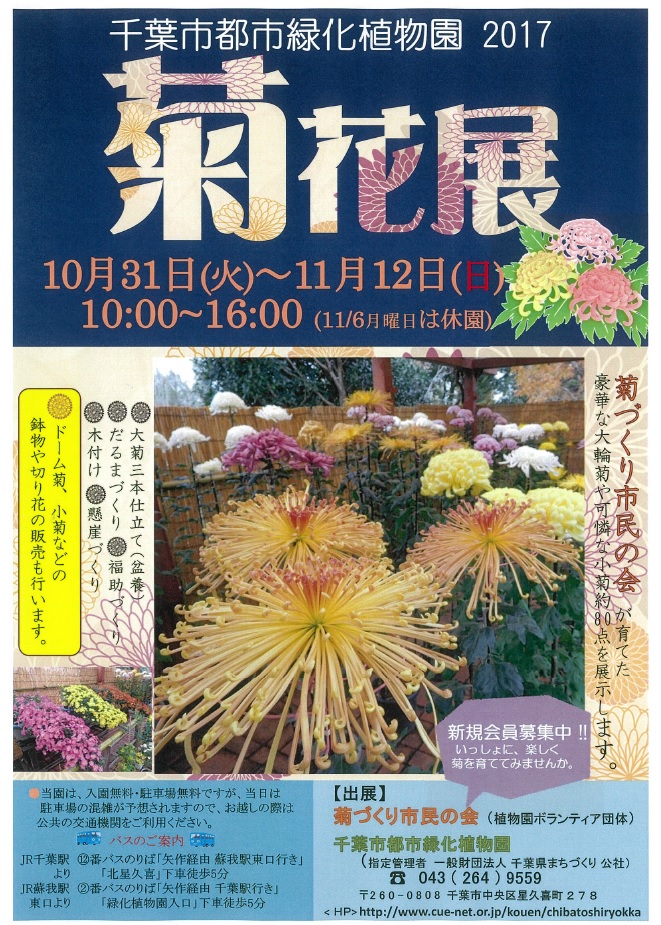 ・JR蘇我駅東口2番バス利用「緑化植物園入口」下車、徒歩5分