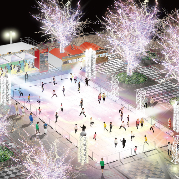 千葉市中央公園に設置されたスケートリンクとイルミネーションの融合はまさに幻想的!