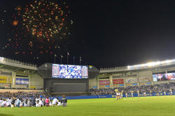ZOZOマリン名物の打ち上げ花火をグラウンドから見ることが出来る。