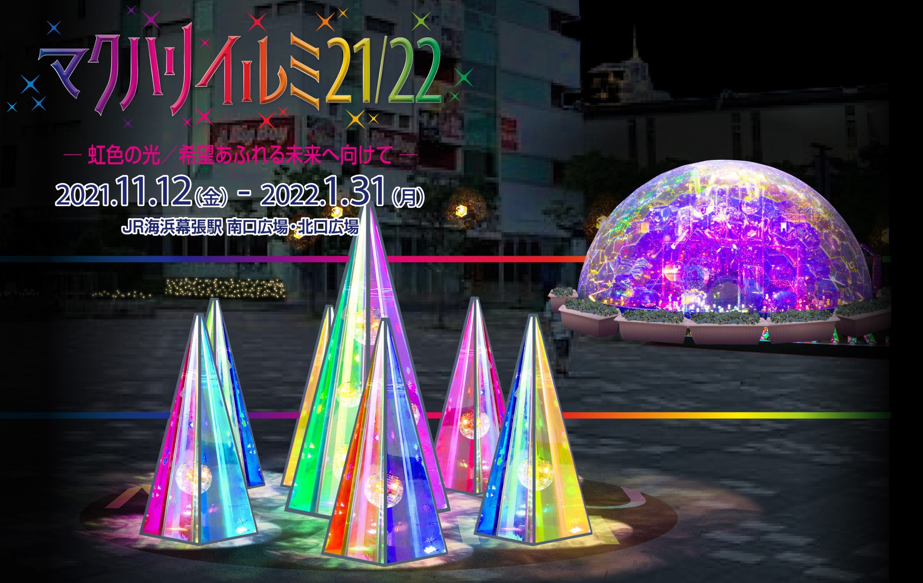 2019 年度より幕張新都心の冬の賑わいづくりとして取り組んでいる「幕張新都心イルミネーション」を、今冬においても開催いたします。新型コロナウイルスの影響により、社会はまだ不透明な状況にありますが、感謝と希望を込めて、MAKUHARI のまちが持つ持続可能性と多様性を象徴するレインボーカラーで彩るイルミネーションをお楽しみ下さい。