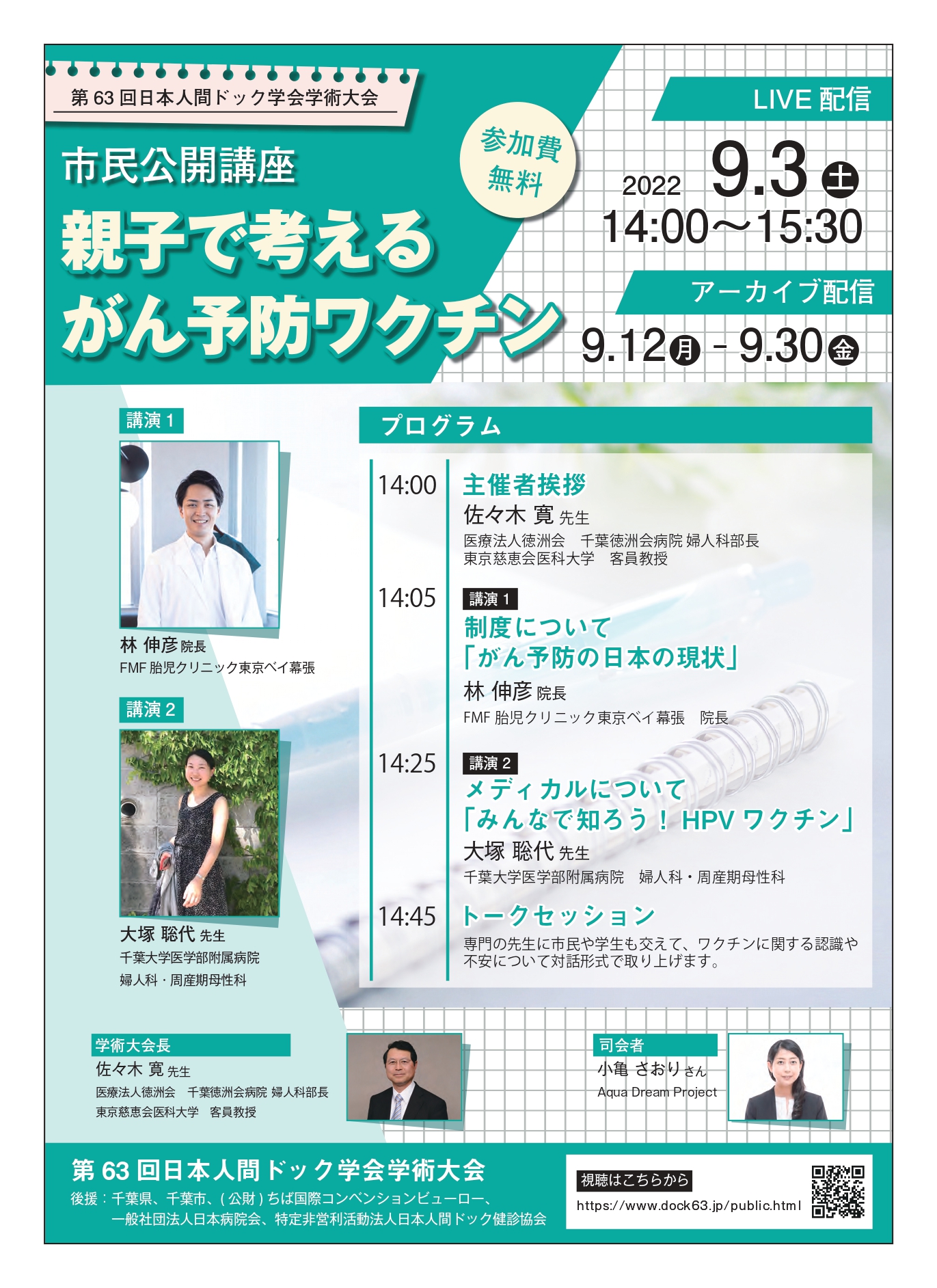無料LiVE配信で、林院長と大塚先生に、接種対象者(高校1年まで接種無料)、そして接種を見守る親世代に向けて「がん予防の現状」や「HPVワクチンについて」をご講演いただきます。